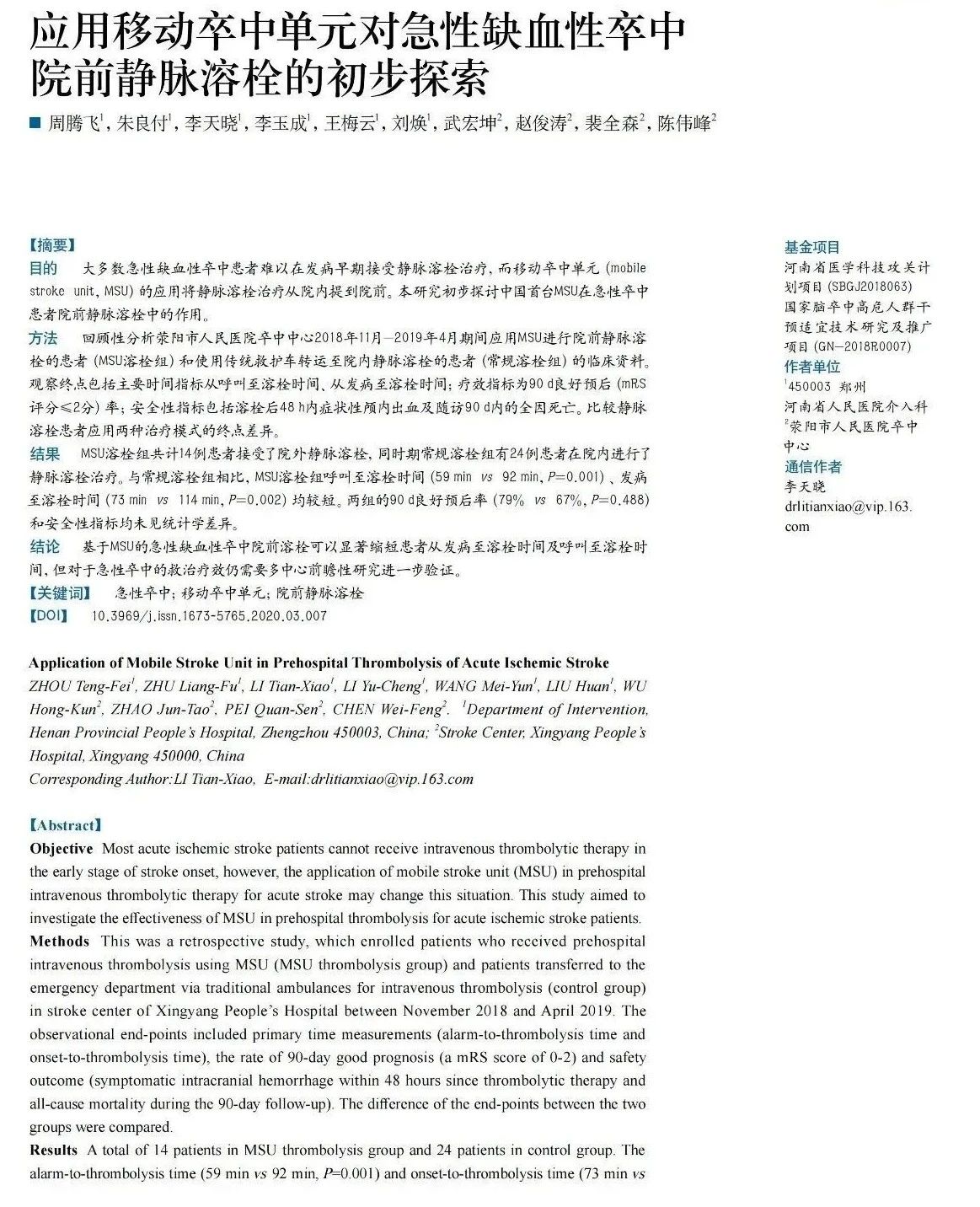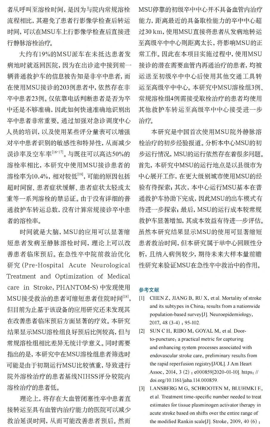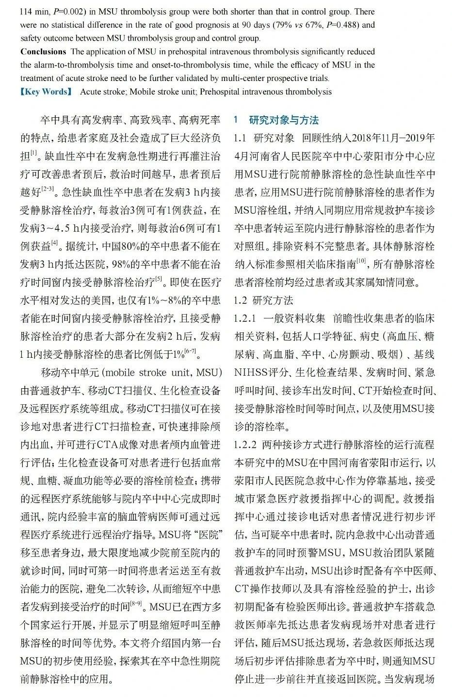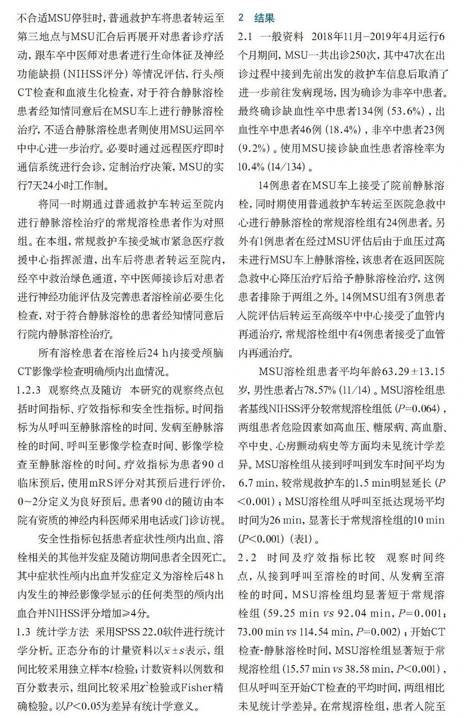 摩科特論文集│應(yīng)用移動(dòng)卒中單元對(duì)急性缺血性卒中院前靜脈溶栓的初步探索